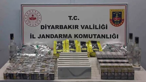 Diyarbakır'da jandarma operasyonlarında 49 olayda 58 şüpheli hakkında işlem yapıldı; çok sayıda kaçak tütün, sigara, puro, elektronik eşya ve viski ele geçirildi.