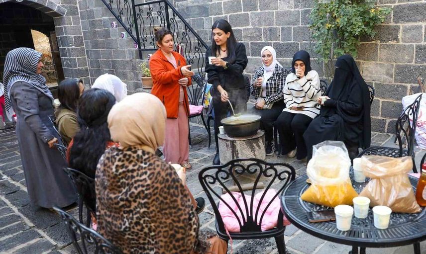 Atölyenin en dikkat çeken bölümü uygulama kısmı oldu. Lalebey Kadın Yaşam Merkezi avlusunda yakılan ateş üzerinde büyük bir kazanda süt kaynatılarak, tariflerde sıkça kullanılan baharatlarla doğal bir karışım hazırlandı. Tarçın, zencefil, zerdeçal ve balın birleşiminden oluşan bu geleneksel içecek, katılımcılar tarafından tadıldı ve üretim süreci deneyimlendirildi. Uygulama, kadınların ortak üretim yapmasına ve deneyim paylaşımına zemin hazırladı.