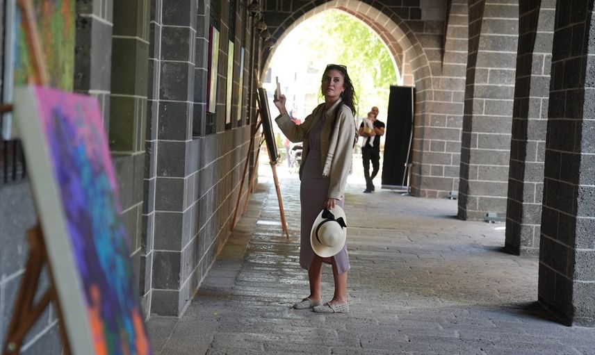 Diyarbakır'da tarihi kilisede düzenlenen sergide 3 ülkeden 7 ressamın çizdiği Diyarbakır temalı 17 resim izlenime sunuldu.