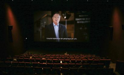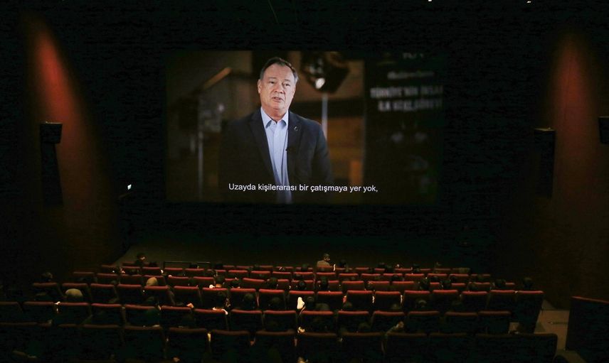 Diyarbakır'da, öğrenciler Türkiye'nin insanlı ilk uzay görevinin hikayesinin anlatıldığı 'Ufkun Ötesinde' belgeselini izlemek üzere bir sinema salonunda toplandı.