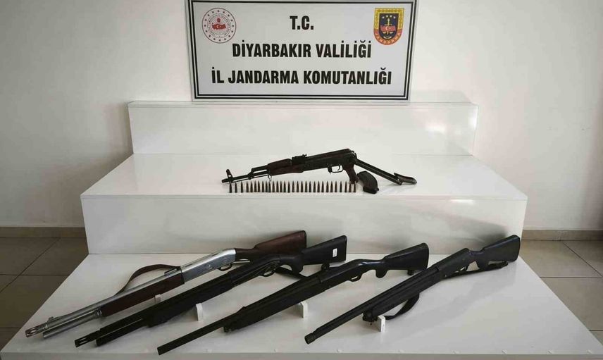 DİYARBAKIR’DA JANDARMA EKİPLERİNCE DÜZENLENEN OPERASYONLARDA 23 ADET TABANCA, 21 ADET AV TÜFEĞİ VE 4 ADET AK-47 PİYADE TÜFEĞİ ELE GEÇİRİLDİ.
