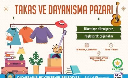 Diyarbakır Büyükşehir Belediyesi, dayanışma kültürünü güçlendirmek ve tüketim alışkanlıklarına dikkat çekmek amacıyla 'Takas Pazarı' etkinliği düzenliyor. Etkinlik, paylaşımı teşvik ederek atıkların ve gereksiz tüketimin azaltılmasını hedefliyor.
