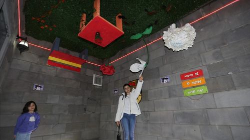 Diyarbakır'ın Sur ilçesinde açılan ters ev, ziyaretçilere eğlenceli bir deneyim sunuyor. Eşyaların tavanda yer aldığı ev, ilgiyle karşılanıyor.