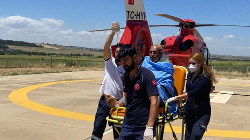 Diyarbakır'ın Kulp ilçesinde yanık yaralanması yaşayan Abdulselam Demir, ambulans helikopterle hastaneye ulaştırıldı.