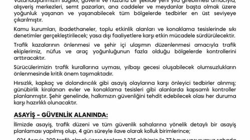 Diyarbakır Valiliği yılbaşı tedbirlerini açıkladıDiyarbakır Valiliği, vatandaşların huzur ve güven içinde yeni yılı karşılamaları amacıyla kapsamlı bir tedbir paketi duyurdu. Valiliğin açıklamasında; güvenlikten sağlığa, ulaşımdan göçle mücadeleye kadar çok yönlü planlamaların hayata geçirileceği belirtildi.Görevli personel ve uygulama noktalarıAçıklamaya göre, il…