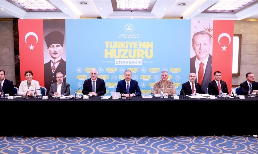 İçişleri Bakanı Ali Yerlikaya'nın başkanlığında, Diyarbakır'da huzur ve güvenliğin artırılması amacıyla bir toplantı gerçekleştirildi.
