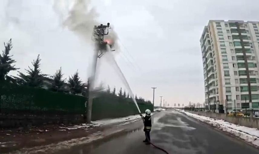 Edinilen bilgilere göre, Diyarbakır'ın Kayapınar ilçesinde, Mezopotamya Bulvarı üzerinde bulunan elektrik direğinin üstündeki trafoda henüz belirlenemeyen nedenle yangın çıktı.