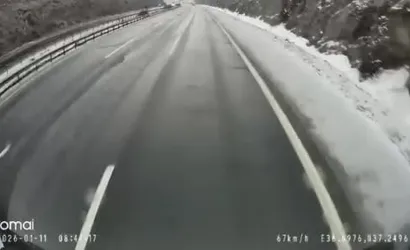 Kaza anı, bölgede ilerleyen başka bir aracın güvenlik kameralarına saniye saniye yansıdı. Olay, gizli buzlanma ile aşırı hız faktörlerinin birleşiminin sürücü kontrolünü büyük ölçüde zorladığını gösteriyor.