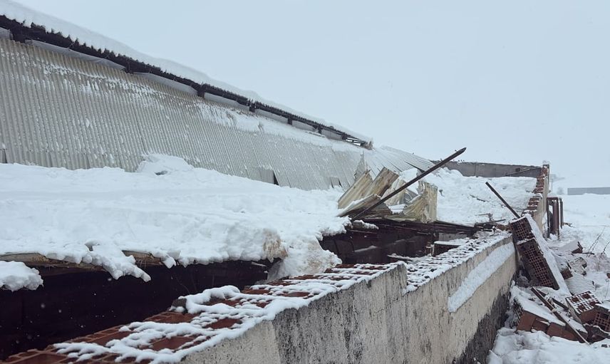 Edinilen bilgilere göre, Diyarbakır'ın merkez Sur ilçesi Kırmasırt Mahallesi'nde yoğun kar yağışının ağırlığına dayanamayan bir ahırın çatısı çöktü.