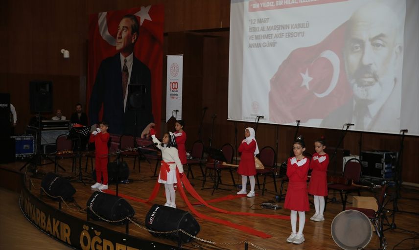 Diyarbakır'da Öğretmenevi Konferans Salonu'nda yapılan törende, saygı duruşunda bulunuldu ve ardından İstiklal Marşı okundu. Dicle Üniversitesi Ziya Gökalp Eğitim Fakültesi Öğretim Üyesi Doç. Dr. Mehmet Serkan Şahin, günün anlamını belirten bir konuşma yaptı. Diyarbakır Güzel Sanatlar Lisesi Korosu tarafından gerçekleştirilen şiir ve müzik dinletisi katılımcılara duygusal anlar yaşattı. Vali Murat Zorluoğlu, Cumhuriyet Başsavcısı Mustafa Çelenk ve Dicle Üniversitesi Rektörü Prof. Dr. Kamuran Eronat, yarışmalarda dereceye giren öğrencilere ödüllerini takdim etti.