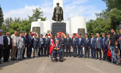 Diyarbakır'da 19 Eylül Gaziler Günü dolayısıyla tören düzenlendi. Törende, Atatürk Anıtı'na çelenk sunuldu, saygı duruşunda bulunuldu, İstiklal Marşı okundu. Törene, Vali Murat Zorluoğlu (sağ 2), 7. Kolordu ve Garnizon Komutanı Korgeneral Gültekin Yaralı (sağ 3), Büyükşehir Belediyesi Başkan Vekili Abdulselam İnceören (sağda), Muharip Gaziler Derneği Şube Başkanı Siraç Sezer (solda), katıldı.