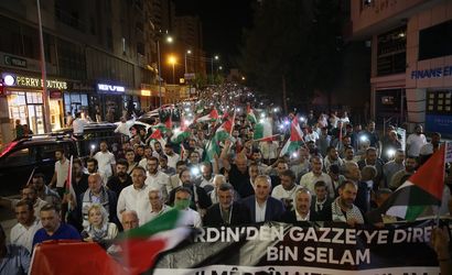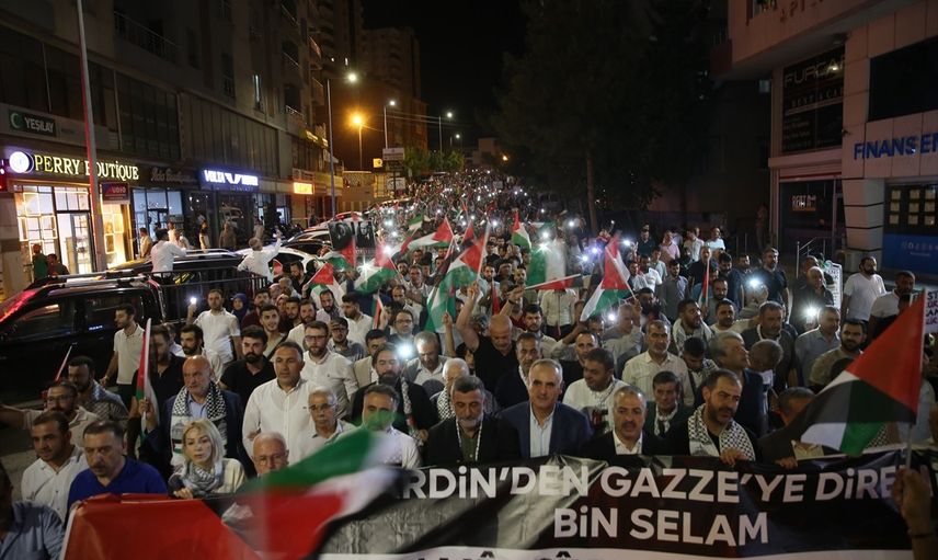 Mardin'de ise, Mardin Sivil Toplum Kuruluşları Platformu öncülüğünde Artuklu ilçesi'nde bir araya gelen grup, üç dilde "Mardin'den Gazze'ye direnişe bin selam" yazılı pankart açarak 15 Temmuz Demokrasi ve Şehitler Parkı'na yürüdü.