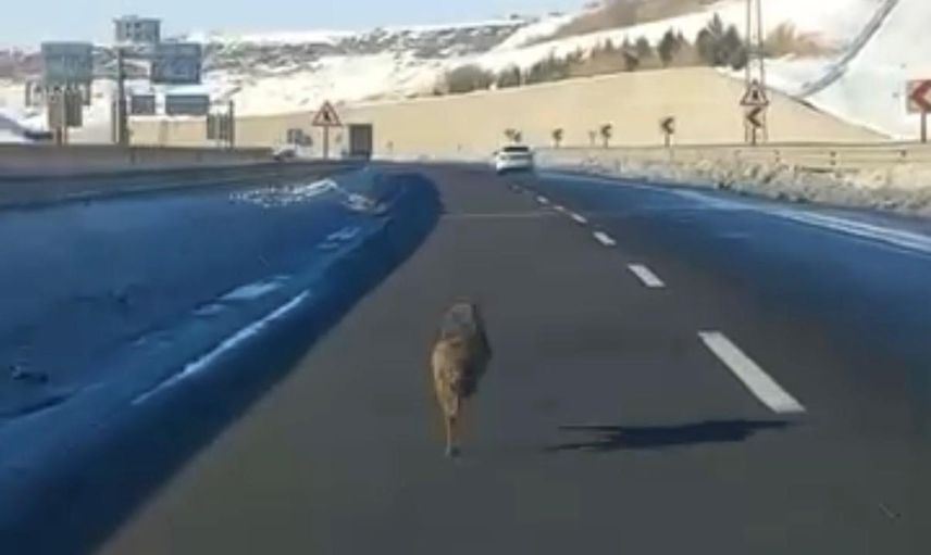 Yoğun kar yağışı nedeniyle kent genelinde bazı bölgelerde kurtların yerleşim yerlerine indiği belirtiliyor. Bu bağlamda, söz konusu kurtun da doğal yaşam alanından ana yola indiği ve araçla aynı istikamette ilerlediği kaydedildi.