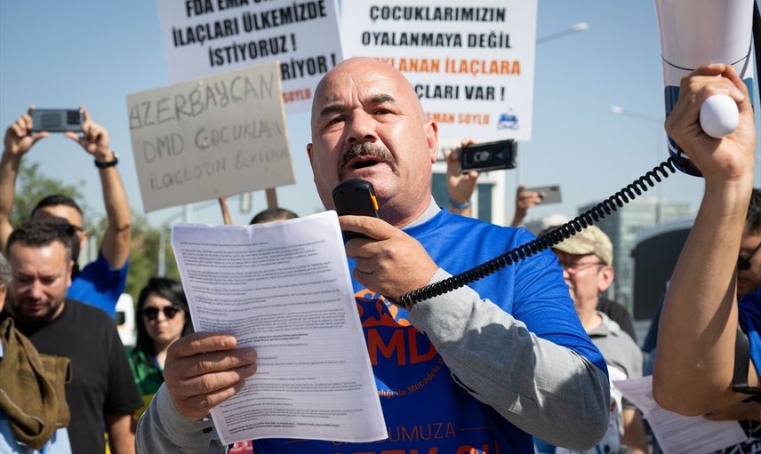 Genellikle erkek çocuklarında görülen, genetik bir kas hastalığı olan DMD ile mücadele eden hastalar ve yakınları, Sağlık Bakanlığı önündeki alanda toplandı. "5 bin DMD hastası evladımız FDA onaylı ilaçlarını bekliyor" ve "Küçük bir adım, büyük bir umut. Umuda destek ol" yazılı pankartlar taşıyan aileler, seslerini duyurmaya çalıştı.
