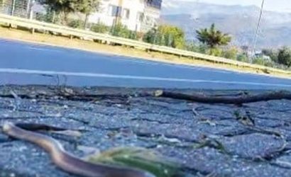 Trabzon'un Beşikdüzü ilçesine bağlı Çeşmeönü Mahallesi'nde sahil kesiminde yılan görüntülendi. İlçede yaşayan Mustafa Kara, arazisinde bahçe temizliği yaptığı sırada Karadeniz Sahil Yolu Çeşmeönü Liman mevkiinde parke taşları üzerinde ilerleyen yılanı fark etti.