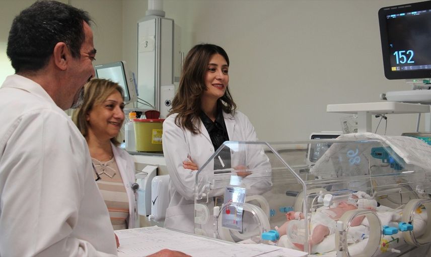 Neonatoloji uzmanı Dr. Meral Alagöz de bu durumun yenidoğanlarda nadir görülen acil cerrahi patolojilerden biri olduğunu ifade ederken, Çocuk Sağlığı ve Hastalıkları Uzmanı İlkay Evrim Özden hastalarının yaşamının 10'uncu gününde ağızdan beslemeye başladıklarını açıkladı. Özden, "Kademeli olarak göğüs tüpünü çektik, bebeğimizi solunum cihazından çıkardık ve bugün yaşamının üçüncü haftasında annesini emiyor," diye ekledi.