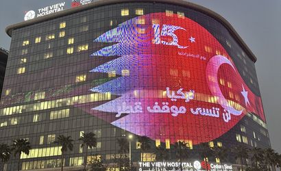 Katar'ın başkenti Doha'daki The View Hospital, '15 Temmuz Demokrasi ve Milli Birlik Günü' dolayısıyla Türk ve Katar bayraklarıyla aydınlatıldı.