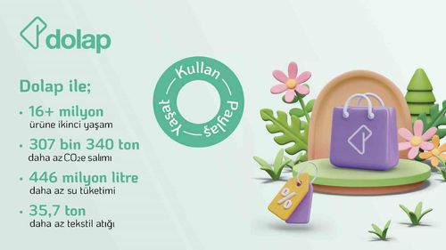 Dolap'ın 2024 Döngüsel Etki Raporu: platformdaki ikinci el satışlar 307 bin 340 ton COe azaltımı sağladı; 16 milyondan fazla ürün yeniden dolaşıma kazandırıldı.