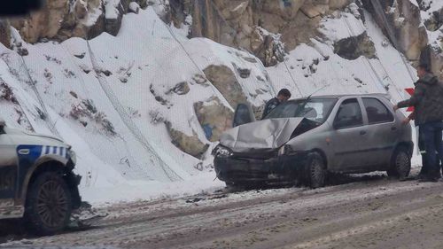 Domaniç-İnegöl karayolunda kar yağışı nedeniyle üç ayrı kazada 5 araç ağır hasar aldı; yaralanma yok. Yetkililer kış lastiği uyarısı yaptı.