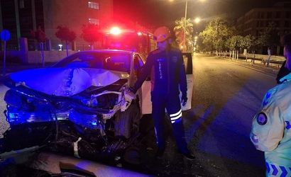 HATAY’DA AYDINLATMA DİREĞİNE ÇARPAN OTOMOBİLİN SÜRÜCÜSÜ YARALANDI.