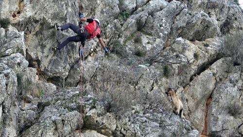 Antalya Döşemealtı'nda kurt saldırısında üç keçisini kaybeden Bayram Yavuz'un uçurumda mahsur kalan keçisi, MAKSAT ekiplerince dört gün sonra kurtarıldı.
