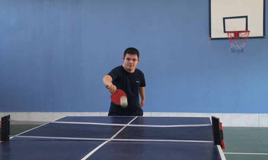Adana'da gittiği rehabilitasyon merkezinde yeteneğinin keşfedilmesiyle masa tenisine yönlendirilen down sendromlu Göktuğ Onur, milli takım hedefiyle antrenmanlarını sürdürüyor.