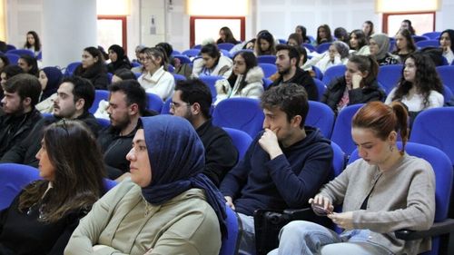 Dumlupınar Üniversitesi'nde düzenlenen konferansta Polis Memuru Burak Akdoğan, sanal riskler, siber ve akran zorbalığı ile dijital güvenlik konularında bilgilendirme yaptı.