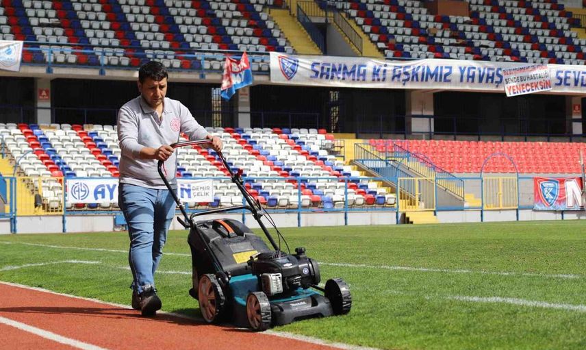 Dr. Necmettin Şeyhoğlu Stadyumu'nda çim bakım çalışmaları başladı