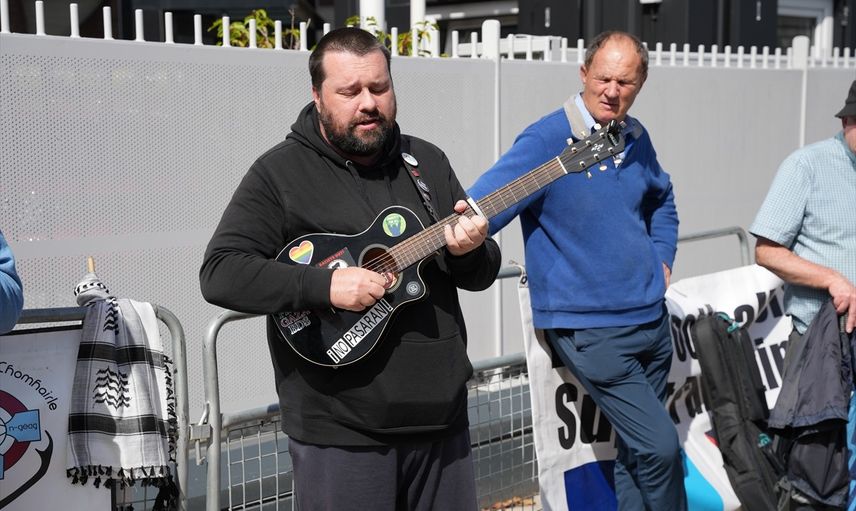 Gösteride, İrlandalı katılımcılar Filistin halkına dayanışma mesajları verirken, şiirler ve şarkılarla destekledi. Göstericiler, barış ve adalet talepleriyle Filistin'in özgürlüğü için coşkuyla slogan attı.