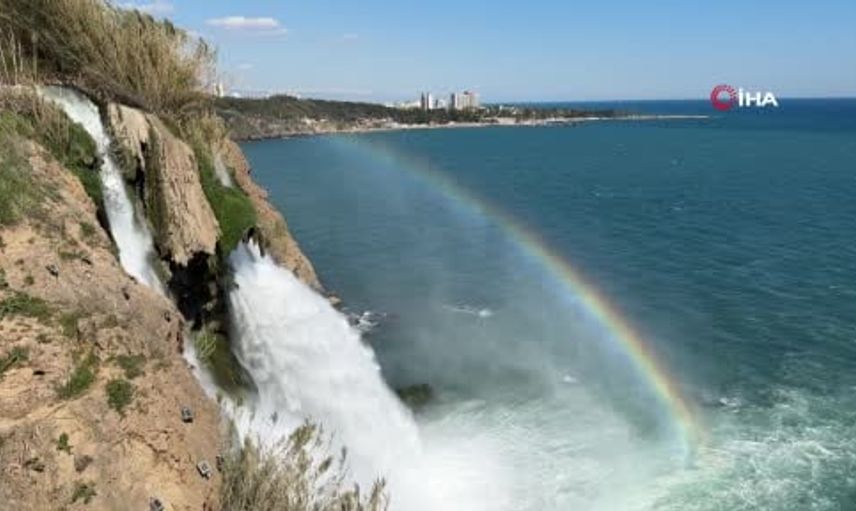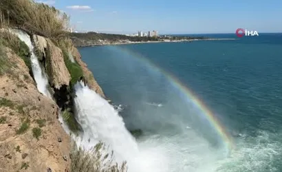 Şelalenin ön bölümünde, şelalenin denizle buluştuğu noktada oluşan gökkuşağı, ziyaretçilere farklı açılardan ölümsüzleştirdikleri kareler sundu. Tatilciler ve Antalyalılar, bu doğal manzarayı fotoğraf ve video ile kaydetmek için alanlarda yoğunlaştı.