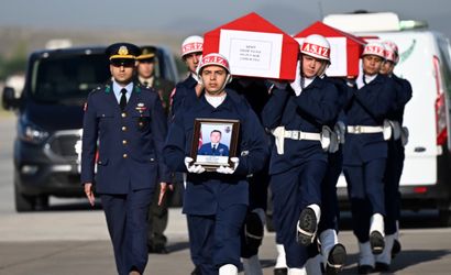 Kayseri’de dün 12'nci Hava Ulaştırma Ana Üs Komutanlığından kalkan ve ardından kaza kırıma uğrayan eğitim uçağındaki iki pilot şehit oldu. Şehit albaylar Uğur Yıldız ve Gökhan Özen’in Türk bayrağına sarılı bedenleri Kayseri Devlet Hastanesi morgundan alınarak önce 12’inci Hava Ulaştırma Ana Üs Komutanlığına getirildi. Burada şehit olan iki albay için cenaze töreni düzenlendi.