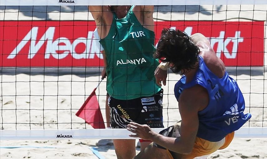 Dünya Plaj Voleybolu Pro Tur 2025'in Alanya etabında Türkiye, erkeklerde İtalya'ya 2-0 yenildi. Milli oyuncular Sacit Kurt (1)-Ahmet Can Tür (2) ikilisinden oluşan Türkiye (yeşil), İtalya'dan (mavi) Enrico Rossi (1)-Marco Viscovich (2) çiftiyle karşılaştı.