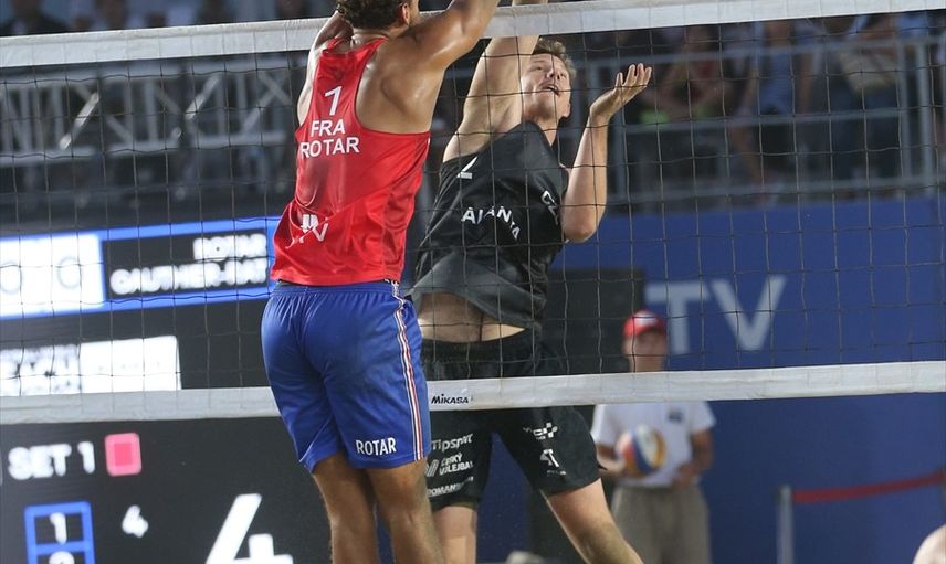 Dünya Plaj Voleybolu Pro Tur 2025'in Alanya etabının final gününde, erkekler finalinde Çekya'dan Perusic-Schweiner (sağda) çifti, Fransa'dan Rotar (solda)-Gauthier Rat ikilisiyle mücadele etti.