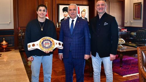 Busenaz Sürmeneli, Dünya Boks Şampiyonası'nda altın madalya kazanarak Trabzon Valisi Aziz Yıldırım'ı ziyaret etti.