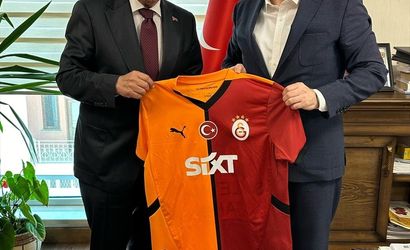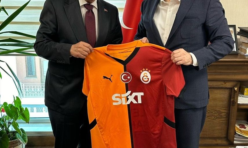 Galatasaray camiası adına iyi dileklerini ifade eden Özbek, Şahin'e bir Galatasaray forması hediye etti.