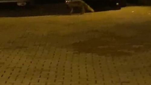 Düzce Bahçeşehir'de akşam yiyecek arayan tilkinin vatandaşın çağrısına paniğe kapılarak kaçtığı, kedinin otomobil altına saklandığı anlar kamerada.