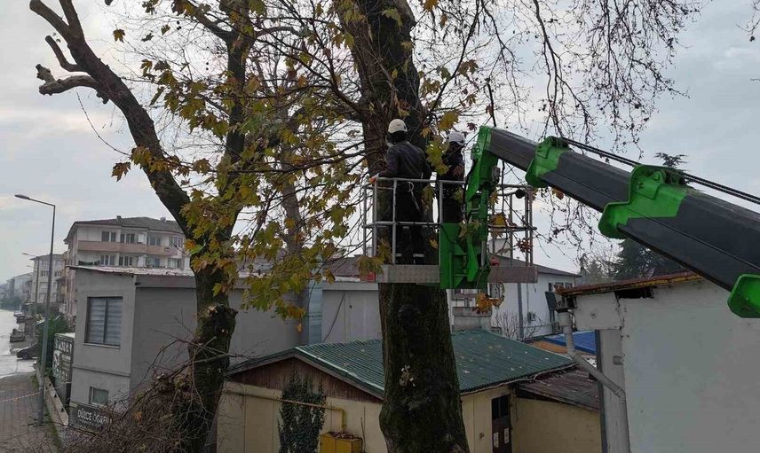 Düzce Belediyesi ana arterlerde kışlık ağaç budama çalışmalarını sürdürüyor