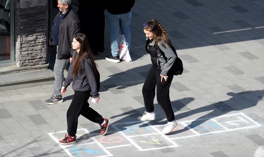 Düzce Belediyesi, 23 Nisan Ulusal Egemenlik ve Çocuk Bayramı kapsamında kaldırımlara çizilen geleneksel "seksek" oyunuyla vatandaşları çocukluk anılarına götürdü.