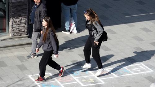 Düzce Belediyesi, 23 Nisan'da kaldırımlara çizilen seksek oyunu ile vatandaşların çocukluk anılarını canlandırdı.