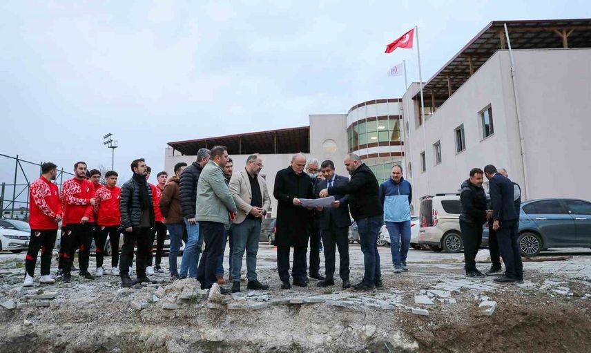 Düzce Belediye Başkanı Dr. Faruk Özlü, Başkan Yardımcıları Hasan Günden ve Barış Bayrak'tan proje hakkında bilgi aldı; incelemeler sonrası Düzcespor tesislerinde teknik heyet ve sporcularla bir araya geldi.