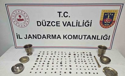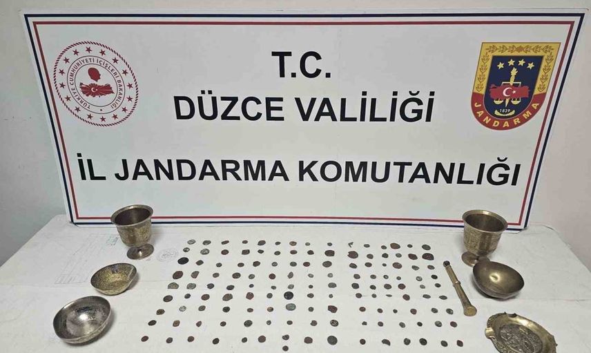 Düzce İl Jandarma Komutanlığı Kaçakçılık ve Organize Suçlarla Mücadele (KOM) ekiplerince yürütülen çalışmada, Gümüşova ilçesinde tarihi eser kaçakçılığına yönelik bir operasyon düzenlendi. Operasyonda satışa çıkarılmak istenirken ele geçirilen eserler ve gözaltına alınan şüphelilerle ilgili işlemler başlatıldı.