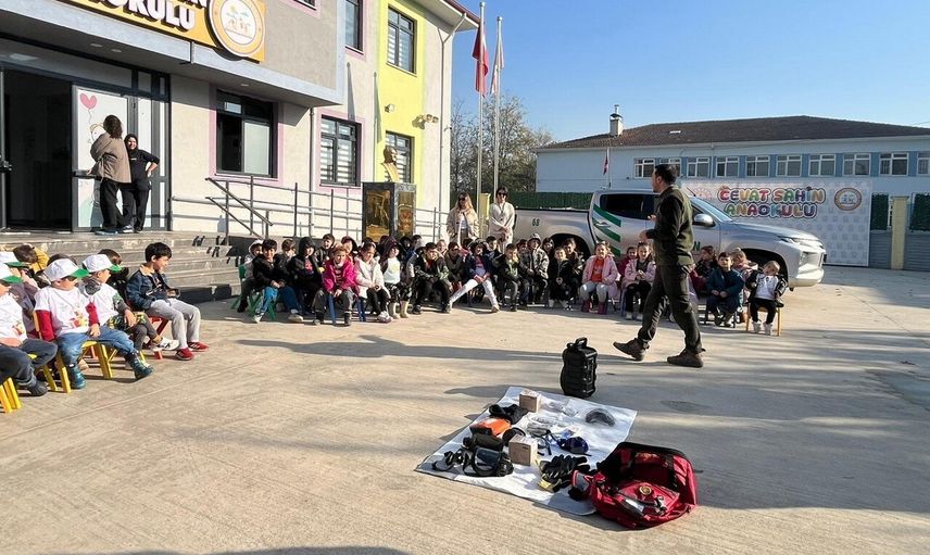 Okul bahçesinde yapılan bilgilendirme çalışmasında, yangın riskinin azaltılmasına dair basit ve yaşa uygun açıklamalara yer verildi. Eğitim sırasında çocuklara görsel ve sözlü anlatımlarla orman sevgisi ve sorumluluk bilinci aşılanmaya çalışıldı.