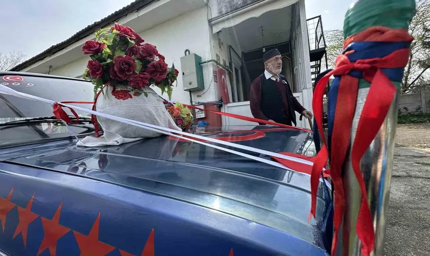 Merkeze bağlı Çamköyde yaşayan Adem Karagülle, 55 yıllık hayat arkadaşı için bu yılki evlilik yıl dönümünde bir aracı gelin arabası gibi süsleyerek eşinin karşısına çıktı. Karagülle, hazırladığı sürprizin ardından eşine kendi yazdığı aşk şiirini okuyarak duygusal anlar yaşattı.
