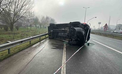 Zonguldak’ın Ereğli ilçesinde özel bir hastaneye ait C.T. idaresindeki 34 JY 7510 plakalı ambulans, Kuzey Çevre Yolu AFAD Kavşağı'nı geçtikten sonra sürücünün direksiyon hakimiyetini kaybetmesi sonucu kontrolden çıktı. Bariyerlere çarpan ambulans devrildi.