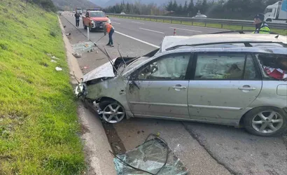 Düzce'de Anadolu Otoyolu'nda trafik kazası: Lastik patlaması bariyere çarpma ve takla ile sonuçlandı