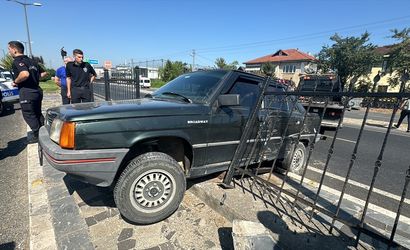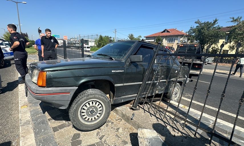 Çarpışmanın ardından savrulan otomobil, refüjdeki demir korkuluklara çarptı.