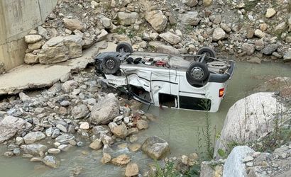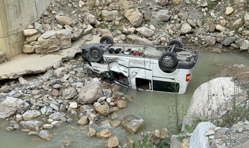 Düzce'de hafif ticari aracın dereye devrilmesi sonucu 2'si çocuk 5 kişi yaralandı.