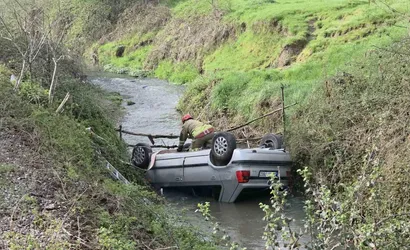 DÜZCE (İHA) – Düzce'nin Soğukpınar Mahallesi Mera yolu üzerinde, gece saatlerinde dereye yuvarlandığı tahmin edilen otomobilin sabah saatlerinde fark edildiği bildirildi.