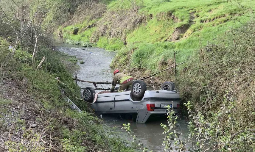 Düzce'de dereye yuvarlanan otomobil sabah fark edildi