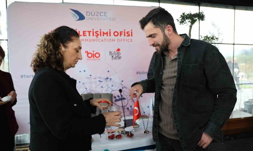 Bilim Kafe'nin davetli konuşmacısı Prof. Dr. Hülya Ünver (Ziraat Fakültesi Bahçe Bitkileri Bölümü), konuşmasında Düzce'de fındığın yanında doğal olarak yetişebilen ürünleri tanımladı. Ünver, kocayemiş, karayemiş, yaban mersini, incir, Trabzon hurması, dağ çileği, kızılcık ve kuşburnunun bu bağlamda öne çıkan türler olduğunu aktardı.